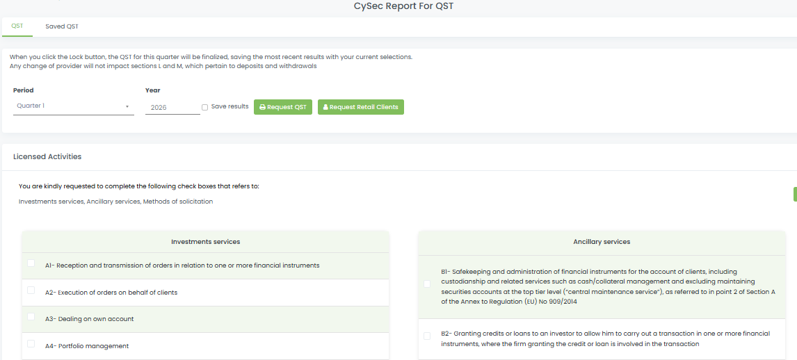 Licensed investment firms must file regulatory reports to CySEC, FCA, CMA, and other international regulators on strict deadlines. Finkit's click-to-fill reporting platform automatically populate report templates. Covering QST, Class 2 XBRL, FCA MIF Forms, CRS, ICF, CBRT, RBSF, CMVM XMLs and Monthly Accounting Reporting. One platform for all your jurisdictions.